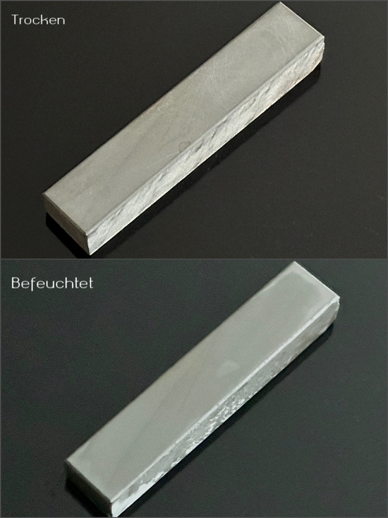 Dieser Stein darf nur mit Wasser verwendet werden und erzeugt eine sehr glatte Schneide. Bitte öl- und fettfrei halten."