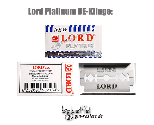 Die Palette die Lord an DE-Klingen bietet, ist überraschend vielfältig und mit der Lord Platinum hat man das Flaggschiff der Firma im Hobel: