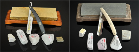 europäische Rasiermesser. Die japanische Schärfsteine sind dafür ausgelegt, erleichtern also den Umgang mit