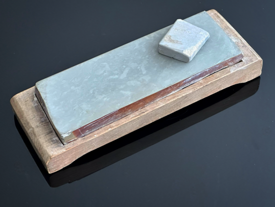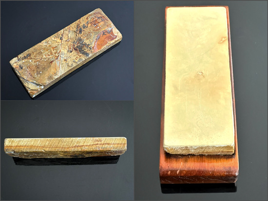 Diesen Stein habe ich in etwa zur Mitte des letzten Jahres erworben und habe ihn bisher sowohl als reinen Finisher zum Polieren als auch bereits als Basisstein einer ,,NAGURA-Progression" genutzt. Der Stein hat eine sehr, sehr feine und gleichermaßen homogene Struktur, welche mich an eine dieser modernen, künstlich hergestellten Marmorfensterbänke erinnert. Die angegebene Härte dieses Steines (lt. Händler liegt sie bei ca. Lv 5++) wurde speziell als Basisstein für die Verwendung mit NAGURA empfohlen. Meine bisherigen Erfahrungen mit diesem Stein zeigten mir ganz klar, dass er im Verhältnis zum NAKAYAMA ASAGI eine deutlich höhere Härte aufweist, aber auch dementsprechend um einiges langsamer ist. Gleichsam hat er aber auch bereits gezeigt, entsprechende Geduld vorausgesetzt, dass er durchaus auch als alleinstehender Finisher im Solobetrieb zu einem gleichsam scharfen, gründlichen, aber auch sanften Rasurverhalten führt. Auch eine polierte Schneidkante zu erreichen, ist möglich, nur muss man, wie bereits erwähnt, eine Menge Zeit & Fleiß mitbringen.