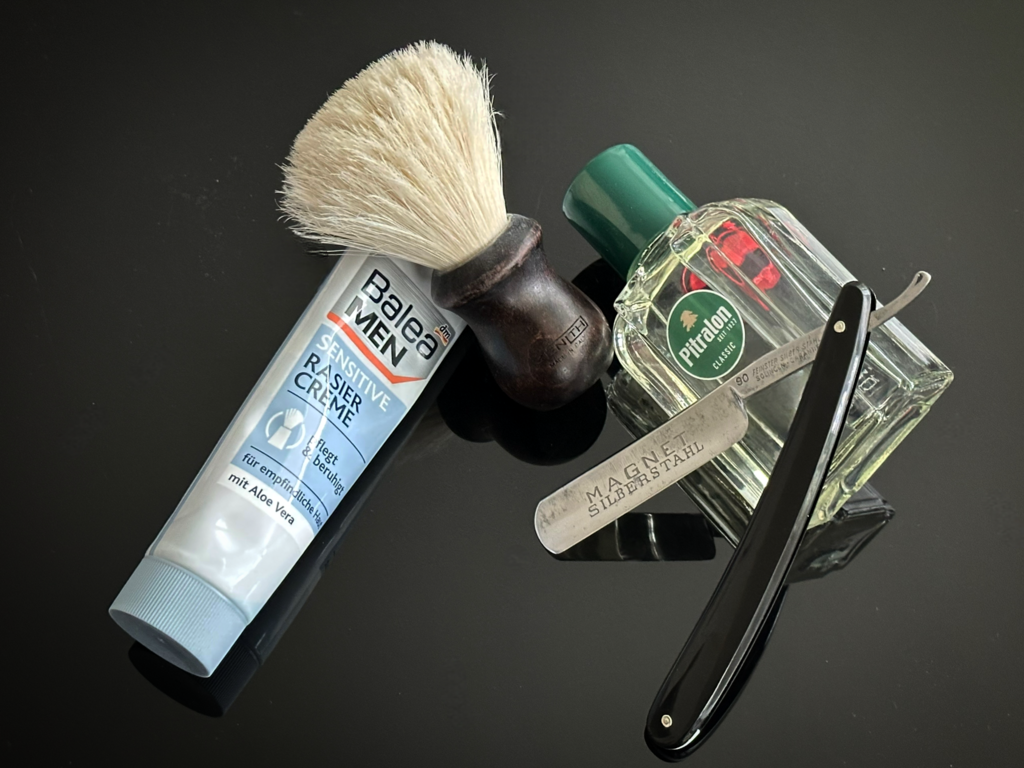 Heute kommt als letztes der drei Messer aus der Sparte ,,Flohmarktfunde", das Garantie Solingen #90 ,,Magnet Silberstahl" an die Stöppelkes. Nach der Aufarbeitung hatte es gestern auch seine erste Steinzeit mit einem SHOBODANI KARASU als Finish. Die Klinge hat eine sehr gute Schärfe bei sehr sanftem Rasurverhalten angenommen, wobei der (gut halbhohle) Schliff natürlich einiges dazu beiträgt. Eine sehr sanfte und gründliche Rasur ,,entschädigt" für die aufgewendete Zeit, aus dem rostigen ,,Fund" nach all den Jahren wieder ein rasierfähiges Messerchen zu machen.