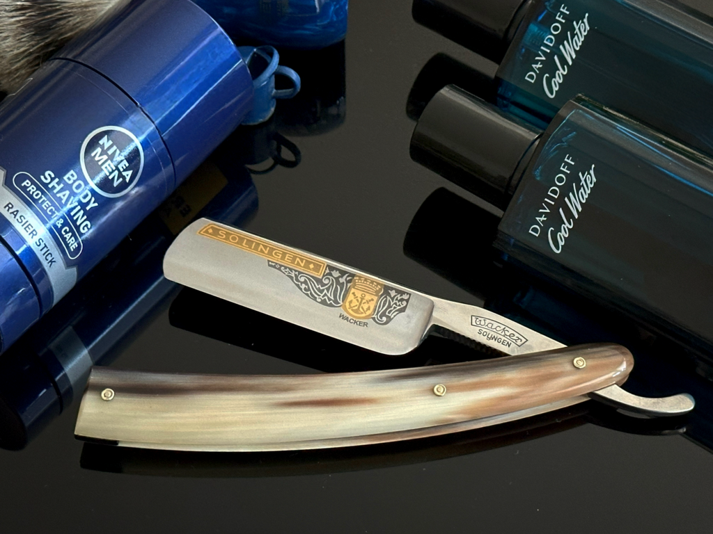Das Messer war ja erst am letzten Freitag (26.09.) dran und es hätte mit Sicherheit auch noch bis zur nächsten Rasur damit gedauert, allerdings habe ich am Wochenende die Schneidkannte des Messers durch eine voreilige und unnütze Dummheit die Schneidkannte in ein Sägeblatt verwandelt. Also war, nachdem sich mein Ärger halbwegs gelegt hatte, eine Steinzeit fällig, um die Schäden zu beseitigen, da reichte auch ein Auffrischen nicht, die Facette musste komplett neu gesetzt werden. Gefinisht auf einem SHOBODANI KARASU lieferte das Messer heute aber eine sehr gute, sanfte und gründliche Rasur...das hilft zumindest dabei, den Grund für die ungeplante Steinzeit zu verdrängen.