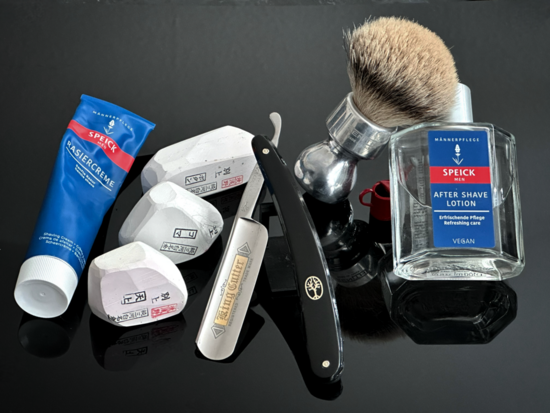 Ebenfalls ein Top Rasurverhalten, allerdings mit minimalen ,,Abzügen" im Bereich Schärfe. Keine Frage, das Messer ist scharf, rasiert wunderbar sanft und gründlich, dennoch gab es in meinen Problembezirken an der Kinnkannte und unter der Nase (gegen den Strich) geringe Unterschiede, hier musste ich schon etwas intensiver nacharbeiten.